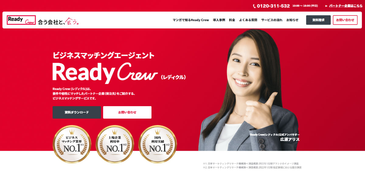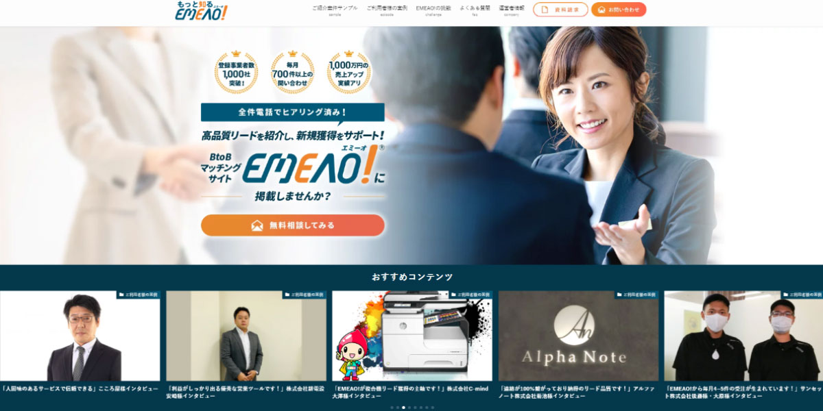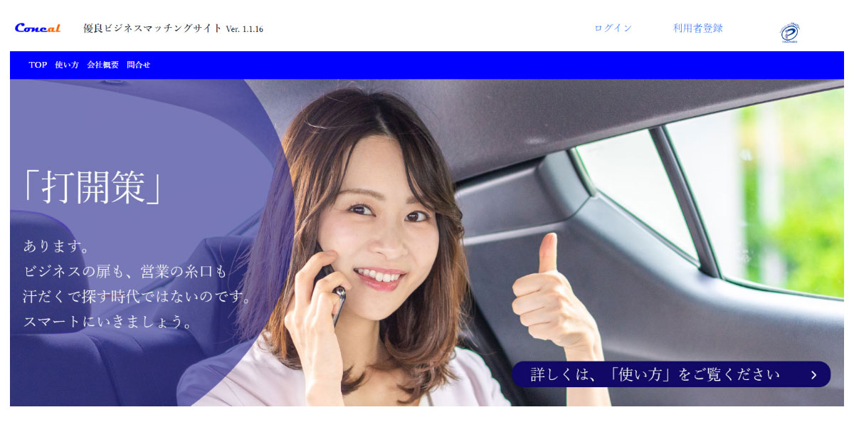 - 条件に合ったマッチング先をコンシェルジュが提案し繋いでくれるサービスがあり、マッチングを希望する側の企業の労力が少なく済みます。コンシェルジュに関しては、YouTube動画の説明を見ることができます。また、初めてビジネスマッチングサービスを利用したいと考えている閲覧者のために、サービスを利用するとどんなメリットがあるかを漫画で説明するページがあります。TOPページのファーストビューに有名女優を起用し、好感度が高いページ作りに寄与していると思います。