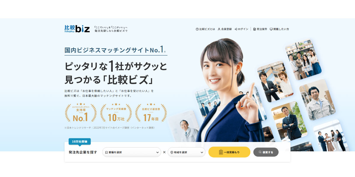 - 専門業者探しに特化したマッチングサービス。面倒な登録やログインなしでも、TOPページからコンシェルジュにチャットで相談できます。一番の魅力は利用料金。なんと無料で使えます。コンシェルジュが優良業者のみを選定して紹介してくれます。実際に使った利用者が、「信頼できる、人間味のあるサービス」と評しています。