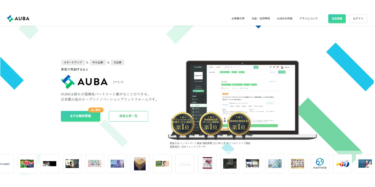 - 共創を目的としたオープンイノベーションに特化したサービスで、スタートアップから大手企業まで業種的にも多種多様な企業が2万社以上登録。専任コンサルタントとのオンライン面談などもあるので、サポートを必要とする場合も対応可能。TOPページに料金プランが明示してあるのもおすすめするポイントの一つです。