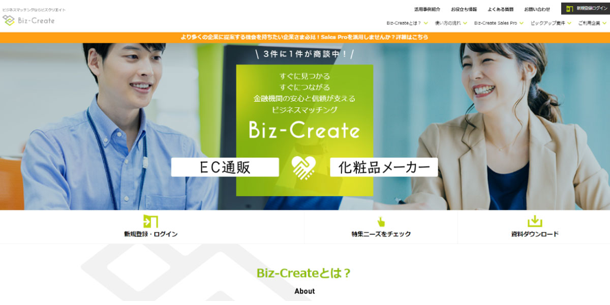 - 三井住友銀行がNECとタッグを組んで2019年にリリースしたビジネスマッチングプラットフームです。金融機関の蓄積されたビジネスマッチングのノウハウを活かし、NECの技術力で構築したシステムですが、将来的には、AIを活用し、より企業側のニーズにマッチしたサービスに発展させていくとのことなので、楽しみなサービスの一つです。