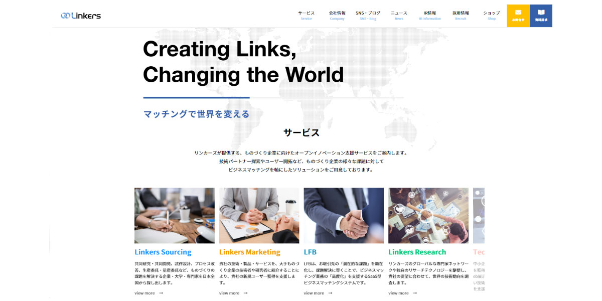 - 国内の中小企業と大手企業、国内の企業と海外企業をつなぐグローバルなビジネスマッチングサイト。運営元が経済産業省管轄の独立法人というところで、海外企業とのマッチングにも期待ができます。サービスを紹介する動画は、ピクトグラムのアニメーション動画を使った凝った作りになっています。漫画を使ったユニークなパンフレットなどもあります。